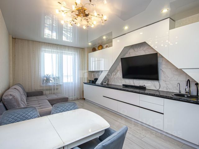 Просторная кухня-гостиная 26 кв.м. с выходом на балкон, спальня 12,5 кв.м с выходом на балкон, кабинет или детская комната (10 кв.м.) В квартире 2 с/у. Квартира полностью меблирована и готова к проживанию.