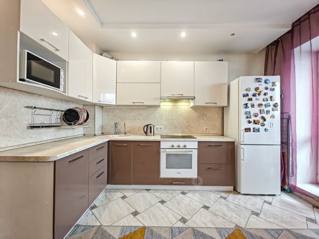 Двухкомнатная квартира с современным ремонтом. Просторные комнаты, стены покрашены в нейтральные светлые цвета акриловой краской — всегда можно перекрасить. Натяжные потолки, светильники с возможностью регулирования яркости пультом и настенным переключателем. Пол выполнен виниловой плиткой LG, которая не боится влаги и устойчива к повреждениям. В комнатах нет порогов, что очень удобно для работы робота-пылесоса.