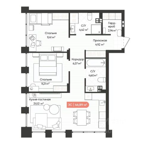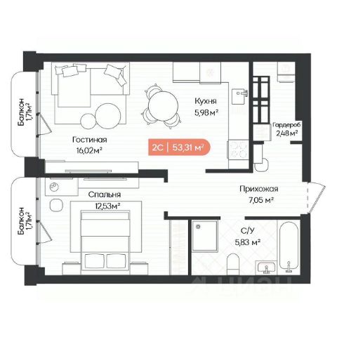 В продаже двухкомнатная студия в ЖК бизнес-класса "Balance". Дом Сдан! Планировка квартиры функциональная: кухню можно разместить в любой из двух комнат, мокрые точки расположены по обеим сторонам квартиры. Также, есть вместительная гардеробная, которую можно использовать в качестве постирочной. В квартире установлены красивые арочные окна, вид во двор на закатную сторону. Квартира в предчистовой отделке: стены выровнены, залит наливной пол, выполнена разводка труб, смонтированы розетки и выключатели. В доме есть подземный паркинг, вокруг дома вместительная наземная парковка. Один взрослый собственник, мат. капитал при покупке не использовался. Звоните!