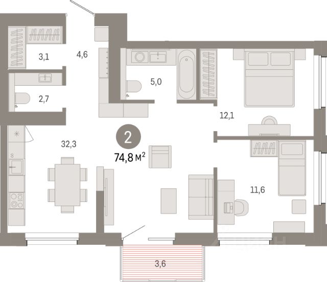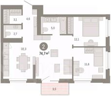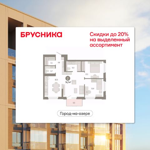 Двухкомнатная квартира с предчистовой отделкой в ЖК "Город-на-озере" на 7 этаже. Общая площадь: 74.77 кв.м. Высота потолков 3.0 м. Дом монолитный, многоподъездный, переменной этажности, от 9 до 24 этажей. Квартира находится в 1-й секции высотой 14 этажей в корпусе 1. На этаже 8 квартир. В подъезде 1 пассажирский и 1 грузовой лифт. Окончание строительства - 4 квартал 2028 года. Оформление сделки по договору долевого участия. Квартира с кухней-гостиной и двумя спальнями в проекте Город-на-озере. Особенности планировки: балкон, второй санузел, потолки 3 м и выше, предчистовая отделка, разнесённые спальни. квартиры в нашей базе: ГРД01-Ж1.7.4. Город-на-озере находится в Центральном районе Новосибирска, на пересечении Ипподромской магистрали и улицы Фрунзе. По этим крупным транспортным артериям легко добраться в любое место города и на автомобиле, и на общественном транспорте. До ближайших автобусных остановок — 5 минут пешком, а до станции метро "Березовая Роща" — 10 минут. В радиусе 1,5 км вокруг квартала уже сформирована необходимая инфраструктура. Здесь есть детские сады, школы, больницы, аптеки, спортивные клубы, торговые центры с супермаркетами, ресторанами и кинотеатрами. Для большего комфорта жителей Город-на-озере обеспечат собственной инфраструктурой. В квартале будет свой торговый центр с магазинами и полезными сервисами. Город взял на себя обязательство создать рядом образовательный кластер — два детских сада и две школы. Особенность квартала — озеро Верховое. Жители района смогут прогуляться по набережной, вокруг водоёма, где будет круговой пешеходный маршрут, с разными зонами отдыха. Кроме того, в пешей доступности от Города-на-озере находятся еще два городских парка: "Центральный" и "Березовая роща". Город-на-озере — проект комплексного развития территории (КРТ) по принципу многофункциональной застройки, или mixed-use. Это когда на одной территории сочетаются жилая, коммерческая, социальная и рекреационная инфраструктура. К 2032 году здесь появятся разноэтажные жилые дома с приватными дворами, образовательный кластер, деловой центр, торговая улица и общественные пространства, открытые для всех горожан. Люди смогут жить и работать в Городе-на-озере, а в обеденный перерыв совершать променад вокруг озера. Локация квартала уникальна: с одной стороны он соседствует с активным уличным фронтом, а с другой — с тихим и спокойным озером с обильным озеленением. При этом участок неровный, перепад высот достигает 30 метров — это высота восьмиэтажного дома. Для разработки проекта мы пригласили лучшие архитектурные бюро из Китая: AEDAS и Turenscape. AEDAS специализируются на создании качественных общественных пространств, а Turenscape — на работах с экосистемой водных объектов. Архитекторы учли особенности местности и объединили урбанистический и природный ландшафты. #26AU9u