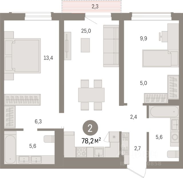 Продается полноценная, видовая 2-комнатная квартира, в современном кирпичном доме на 10-м этаже.