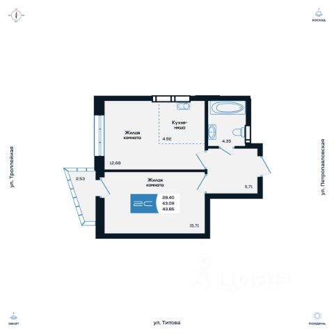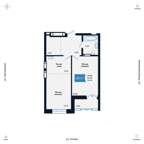 Продаётся 2-комнатная квартира в строящемся доме (Дом 2), срок сдачи: I-кв. 2027, общей площадью 44.18 кв.м., на 3 этаже. Новые жилые дома от компании "SKY GROUP" расположены в Ленинском районе Новосибирска на ул. Титова.