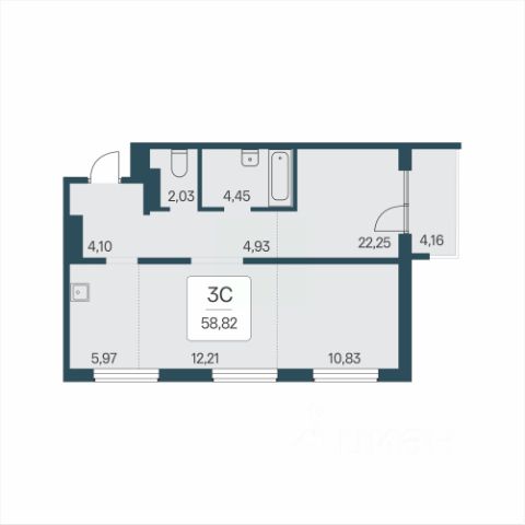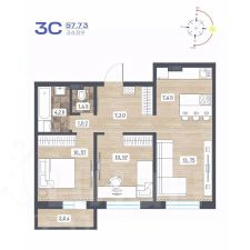 Квартира расположена на 4-м этаже пятиэтажного жилого дома. Высота потолков в квартире 2,65 м. Квартира имеет удобную планировку на две стороны, во двор выходят: кухня 7,4 кв.м., жилая комната 10,2 кв.м., на улицу выходят жилые комнаты 15,5 кв.м. и 12,5 кв.м. Общая площадь квартиры 57,6 кв.м.