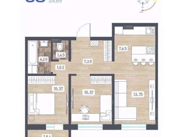 Квартира продается с кухонным гарнитуром без бытовой техники, остается: мебельная стенка в жилой комнате 15,5 кв.м., шкаф и кровать в жилой комнате 10,2 кв.м.
