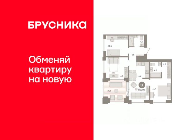 3-комн. квартира с предчистовой отделкой в ЖК "Пшеница" на 3 этаже. Общая площадь: 79.38 кв.м., жилая: 36 кв.м., площадь просторной кухни-гостиной: 16 кв.м. Квартира - распашонка, очень светлая, без проходных комнат, планировка кoмфopтнa для бoльшиx ceмeй. В квартире один балкон, один совмещенный и один раздельный санузел. Высота потолков 2.82 м. Дом монолитный, многоподъездный, переменной этажности, от 8 до 9 этажей. Квартира находится в 3-й секции высотой 8 этажей в корпусе 6-1. На этаже 3 квартиры. В подъезде 1 пассажирский и 1 грузовой лифт. Окончание строительства - 3 квартал 2028 года. Оформление сделки по договору долевого участия. Квартира с кухней-гостиной и тремя спальнями в жилом районе "Пшеница". Особенности планировки: балкон, вид во двор, гардеробная, мастер-спальня, окна на две стороны, предчистовая отделка, разнесённые спальни. квартиры в нашей базе: ПШЦ06.1-Ж3.3.2. "Пшеница" расположена в третьем микрорайоне посёлка Краснообск, на пересечении улицы Центральная и Советского шоссе. Посёлок был создан в 1970 году. Архитекторы создали в Краснообске все условия для научной деятельности, быта, культурного развития, отдыха и поддержания здоровья жителей. Но их проект так и не был полностью реализован. Сегодня рядом с проектом "Пшеница" расположены остановки транспорта, выезды на транспортные магистрали. До Бугринского моста — 15 минут на автомобиле. До станции метро "Площадь Маркса" — 35 минут на автобусе, 20 минут на автомобиле. В 1520 минутах от жилого района расположен крупный ТРЦ "Мега". Внутри посёлка сформирована необходимая инфраструктура: лицей, школы, детские сады, больница, поликлиника, частные медицинские центры, магазины, спортивные клубы. Рядом находится лесопарк им. академика Синягина. Район "Пшеница" — это квартальная среднеэтажная застройка с закрытыми от машин безопасными дворами. В основу проекта мы заложили три принципа. Первый — разнообразие и плотность. Для нас важно создать среду, где человек в шаговой доступности мог бы получить любой сервис. Второй принцип — сохранение истории места, уважение к идеям первых архитекторов ВАСХНИЛа и локальной идентичности. Достопримечательностью района станет круговой бульвар. Третий принцип — связанность. Район постепенно станет единым целым за счет организации плотной сети вело- и пешеходных маршрутов, формирования разнородных общественных пространств. Если Вы - риелтор, пожалуйста, за более подробной информацией обратитесь на горячую линию на нашем официальном сайте. #ZsB9eD 3-комнатная квартира, примерная площадь 80 м2 в Новосибирской области.