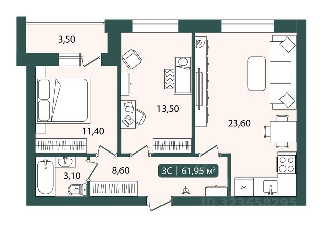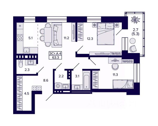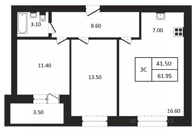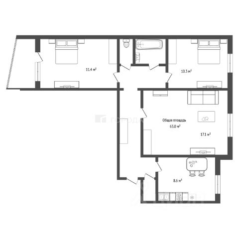 Трехкомнатная квартира с европланировкой и предчистовой отделкой в ЖК "Астон.Геометрия" на 24 этаже. Общая площадь: 57.73 кв.м., жилая: 39.49 кв.м., суммарная площадь гостиной-столовой с кухонной зоной: 21.93 кв.м. Европланировка, кухня и гостиная объединены в одно просторное помещение. Квартира угловая, окна oбecпeчивaют paвнoмepнoe ocвeщeниe в тeчeниe дня. В квартире одна лоджия, один совмещенный и один раздельный санузел. Высота потолков 2.7 м.