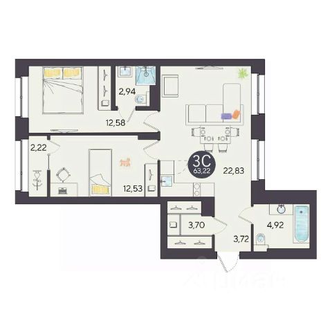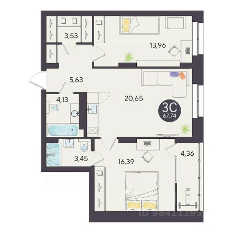 Продаётся 3-комнатная квартира в строящемся доме (Дом 32), срок сдачи: IV-кв. 2027, общей площадью 59.6 кв.м., на 17 этаже. Расположение, транспортная доступностьНовый жилой комплекс комфорт-класса "Город-парк Ясный Берег" строится на левом берегу реки Обь, но при этом совсем недалеко от центра Новосибирска. Новый микрорайон расположится рядом с проездом Энергетиков, который переходит в Дмитровский мост. Добраться до самого центра мегаполиса совсем несложно: дорога на автомобиле займет всего десять минут в зависимости от загруженности магистралей (расстояние до исторического центра чуть больше 4 км).На общественном транспорте до центральных районов можно доехать за двадцать пять минут (время в пути зависит и от дорожного трафика, от выбранного маршрута и точного места назначения). В шаговой доступности от ЖК "Город-парк Ясный Берег" расположена остановка "Мост", откуда курсируют автобусы и маршрутные такси в разные районы Новосибирска.Рядом с новым ЖК проходят крупнейшие транспортные артерии города Октябрьский мост, проезд Энергетиков, улицы Ватутина, Котовского, Станционная и Немировича-Данченко, так что добраться в любую точку города не составит труда как на машине, так и на общественном транспорте.ИнфраструктураЛенинский район, где возводится "Ясный Берег", считается престижным, так что уже сейчас новые владельцы квартир города-парка смогут наслаждаться комфортной городской жизнью в тихом микрорайоне. В шаговой доступности: детские садики, общеобразовательные школы, магазины, аптеки, сетевые супермаркеты, кафе, аптеки, медицинские учреждения. За пять минут можно доехать до строительного гипермаркета "Леруа Мерлен". Вокруг много мест для отдыха, занятий спортом, прогулок с детьми.Впрочем, согласно концепции, в недалеком будущем жителям "Города-парка Ясный Берег" не понадобится часто покидать пределы любимого микрорайона, поскольку новый жилой комплекс будет представлять собой "город в городе". На территории ЖК будет большой парк с пешеходными и велосипедными дорожками, местами для отдыха, игровыми зонами. Отличительной особенностью станет детская гоночная трасса точный аналог сочинской "Формулы-1".На территории "Города-парка Ясный Берег" построят детские площадки с современным игровым оборудованием, школы, развивающие секции и кружки, детские сады (один построен и уже работает). В городе-парке будут и огороженные места для курения, и территории для прогулок с домашними питомцами. В микрорайоне предусмотрено много зон с wi-fi.Надежность застройщикаЗастройщиком проекта является СК "Аква Сити", основанная в 2012 году. Генеральным подрядчиком компания "Метаприбор". В 2016 году "Метаприбор" занял первое место в области по объемам введенного в эксплуатацию жилья (благодаря своевременной сдаче двух корпусов в ЖК "Город-парк Ясный Берег").Эти компании осуществляют полный цикл строительства от выбора участков под застройку до внутренней отделки, ввода в эксплуатацию и благоустройству территории новых ЖК.И "Аква Сити", и "Метаприбор" имеют хорошую р