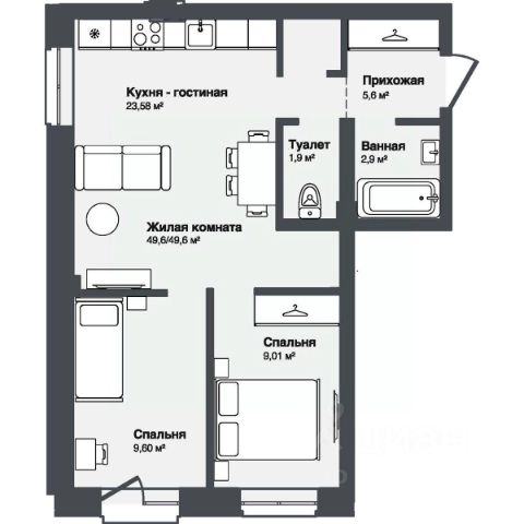 • ✅ Минимальная площадь: 47,6 м²