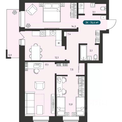 124 115 ₽/м²