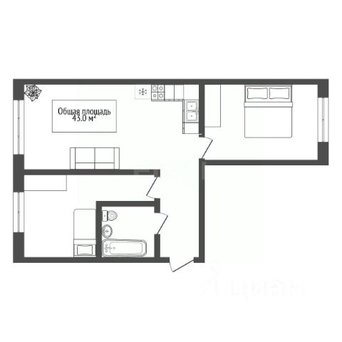 общая площадь: 54,1 кв. м (жилая 42 кв. м)
