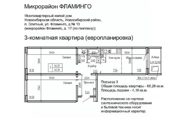 Продаётся 3-комнатная квартира в сданном доме (Фламинго, 20 (поз. 5)), срок сдачи: II-кв. 2019, общей площадью 63.9 кв.м., на 2 этаже. Расположение, транспортная доступность Жилой комплекс "Фламинго" расположен в поселкеЭлитный Новосибирского района, на бывших сельскохозяйственных угодьях площадью 45 га, примыкающих к Кировскому району Новосибирска. Микрорайон считается экологически благоприятным пригородом, окруженным кварталами частных домов: по соседству находятся дачныекомплексы и коттеджные поселки "Березки" и "Элитный". С северной и южной стороны участок застройки граничит с лесополосами. шаговой доступности находится несколько остановок общественного транспорта: около двадцати линий автобусов, маршрутных такси и троллейбусов. Транспортные преимущества для владельцев автомобилей обеспечивает быстрый выезд на Ордынское и Советское шоссе (с новыми развязками), Бугринский мост и Чуйский тракт. Путь на машине до международного аэропорта Толмачево, главного железнодорожного вокзала или центра Новосибирска займет около сорока минут, до автовокзала - полчаса, до площади Карла Маркса (центр левобережья) - двадцать минут. Инфраструктура В микрорайоне Фламинго запланировано строительство спортивного комплекса "Магис-Фламинго" с бассейном и лыжно-тренировочной базой. В детском саду предусмотрено 330 мест, в общеобразовательной школе - 1100 мест. В поселке есть поликлиника на 300 посещений в смену, Дом культуры (более 40 кружков и секций), две общеобразовательные школы, колледж, несколько детских садов, библиотека. В шаговой доступности расположена ледовая арена, стадион, городок аттракционов, кинотеатр, сквер, несколько продуктовых магазинов, кафе, аптек, торговый комплекс и рынок. На общественном транспорте можно доехать до гипермаркета "Метро", площади Маркса с крупными торговыми комплексами и многочисленными объектами инфраструктуры, а также до центральных районов Новосибирска. Надежность застройщика Масштабный проект реализует алтайская компания "Жилищная инициатива", основанная в 1998 году в Барнауле. Комплексное освоение земель - приоритетное направление в девелоперских проектах компании. В активе застройщика жилые комплексы в Барнауле: "Рубин", "Дружный", "Дмитровские горки", "Лазурный". В 2008 году "Жилищная инициатива" вышла на рынок Новосибирска, открыв дочернее подразделение - ООО "Новосибирский квартал". Глава обоих предприятий - Ю.А. Гатилов, почетный строитель России. За 20 лет было введено в эксплуатацию более 100 домов, штат компании составляет около 700 человек. Архитектура Жилой комплекс "Фламинго" - это 40 пятиэтажных кирпичных и панельных домов и два гаражных комплекса на территории 44,8 га. Всего в комплексе будет представлено 3995 однокомнатных, двухкомнатных и трехкомнатных квартир площадью от 33 до 110 кв. м, расположенных на всех пяти этажах здания. Все квартиры в ЖК "Фламинго" передаются покупателям с готовым ремонтом под ключ. Фасады выполнены в светло-серых, бежевых и коричневых оттенках. Наружные стены панельных