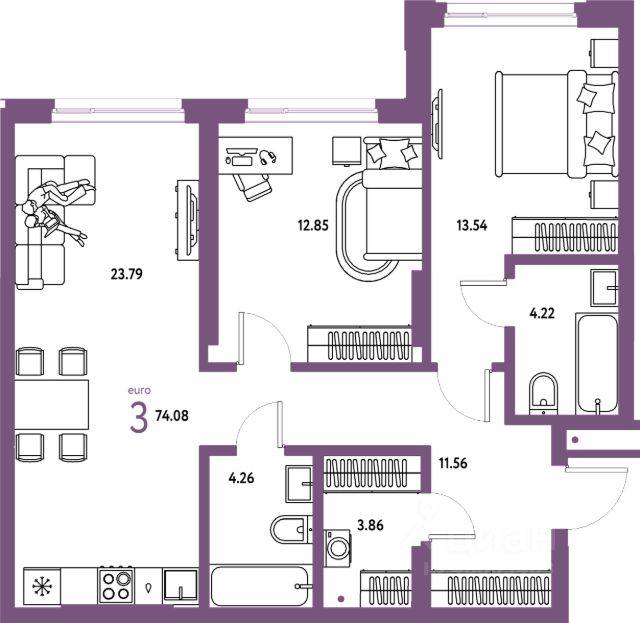 Эксклюзивные резиденции для избранных в самом центре Новосибирска. Преимущества: - Панорамные виды на центр города - Лоты с террасами - Лоты с дровяными каминами - Подземный паркинг на 80 м/м - Современное лобби с ресепшен - В самом центре Новосибирска - Функциональные планировки - Возможность объединения нескольких лотов - Лоты от 45 до 160 м² Способы покупки: - Индивидуальные предложения при оплате 100% - Беспроцентная рассрочка на год с первоначальным взносом 30% - Лизинг от партнеров - Возврат НДС Продается 3х- комн. евро резиденция. Объект расположен в элитном клубном комплексе (Чаплыгина 54). Общая площадь составляет 64,3 кв.м. Проект расположен в самом сердце Новосибирска, в шаговой доступности от знаковых культурно-исторических мест столицы Сибири, на пересечении улиц Красный проспект и Чаплыгина. Современное здание эффектно вписывается в городские ландшафты и гармонирует с отреставрированной исторической аптекой. Расположение дома считается редкой локацией, поскольку в городском центре почти не осталось свободных участков. В доме предусмотрены высокотехнологичные инженерные коммуникации. За безопасность отвечают видеодомофоны FERMAX и автоматизированная система охраны Bolid. В помещениях установлены немецкие окна Schuco Изысканная отделка интерьеров лобби и холлов жилых этажей выполнена в стиле ар-деко. Лобби украшает дизайнерская мебель, мрамор и натуральное дерево. Общественные зоны украсили зеркала, светильники, молдинги и акцентные элементы из латуни. Настенные панели и входные двери выполнены из шпонированной древесины ценных тропических пород. Все апартаменты передаются с предчистовой отделкой, позволяющей обустроить дизайн по собственным вкусам. Функциональные и удобные планировки апартаментов дополняются высокими потолками в 3м и великолепными панорамными видами на Новосибирск. Преимуществом проекта является возможность объединить несколько лотов в единое жилое пространство.