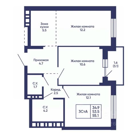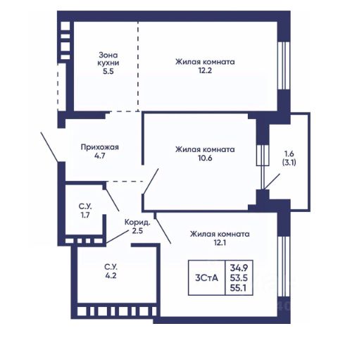 Продаётся 3-комнатная квартира в сданном доме (Дом 10), срок сдачи: IV-кв. 2025, общей площадью 57.73 кв.м., на 12 этаже. Расположение, транспортная доступность