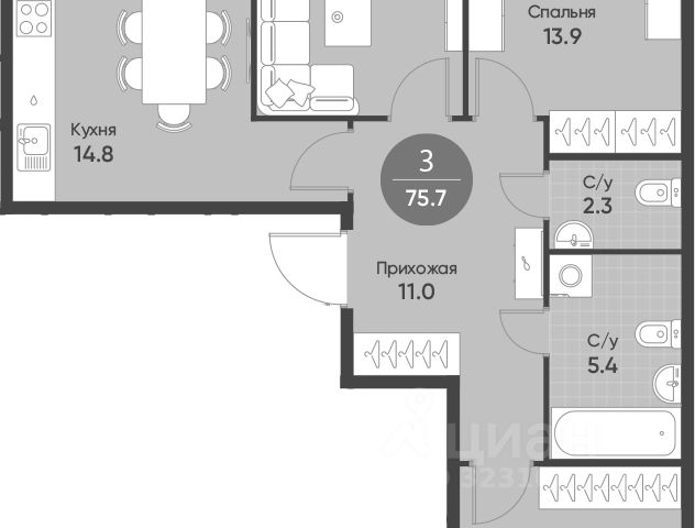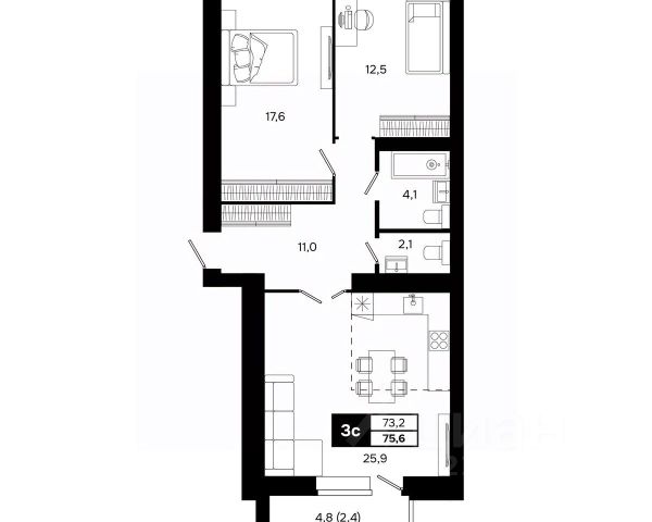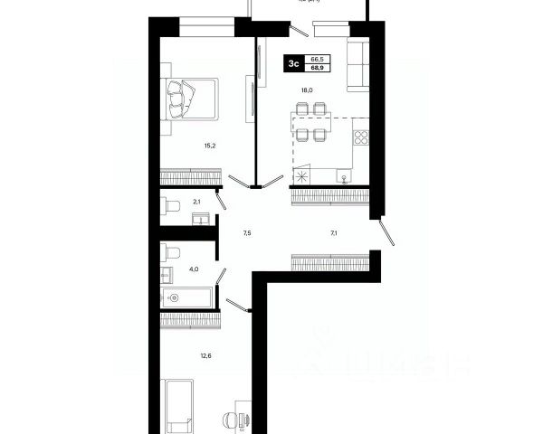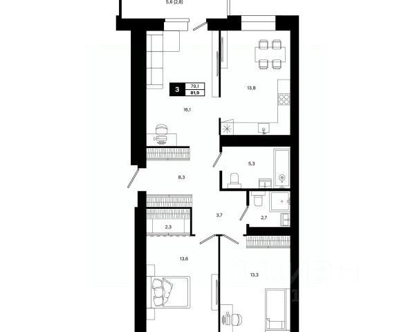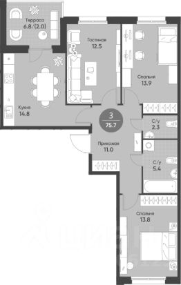 - в квартире есть кладовка 1.5 кв.м. , на планировке помещение под номером 3;