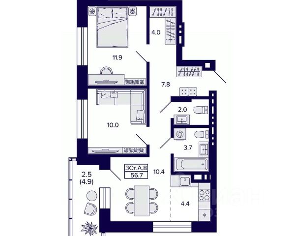 • ✅ Минимальная площадь: 56 м²