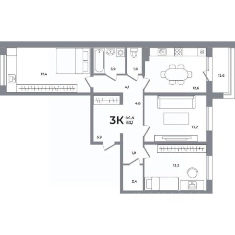 🔷 Средняя цена за м2:103,4 тыс. руб./м²