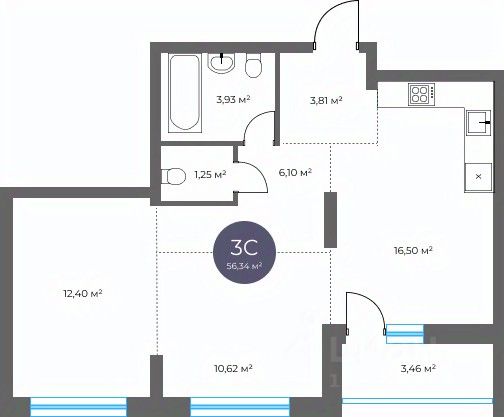 • ✅ Минимальная площадь: 56,3 м²