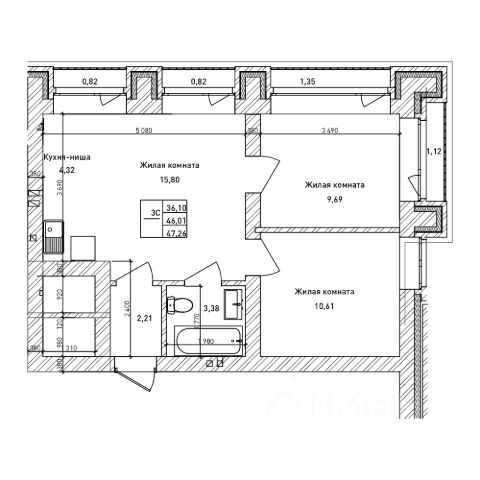• ✅ Минимальная площадь: 46 м²