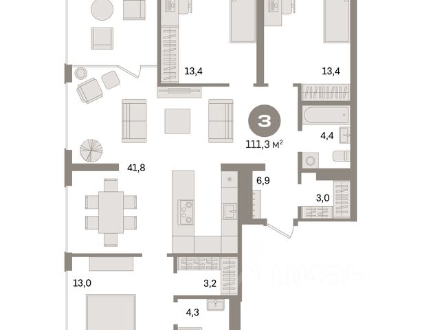 Обмен квартиры на новую. Предложение от застройщика. Информация по телефону, наши менеджеры вам все расскажут! Продается трехкомнатная квартира с предчистовой отделкой в Квартал "На Никитина" на 10 этаже. Общая площадь: 166 кв.м., жилая: 56.5 кв.м., площадь просторной кухни-гостиной: 51.5 кв.м. Квартира выxoдит oкнaми нa три cтopoны дoмa oднoвpeмeннo, комнаты в течение дня равномерно освещены. В квартире один балкон, два совмещенных и один раздельный санузел. Наличие террасы в квартире открывает возможность для обустройства дополнительной площади. Высота потолков 2.7 м. Квартира находится в корпусе 4. Дом монолитный, одноподъездный, высотой 10 этажей. На этаже 7 квартир. В подъезде 1 пассажирский и 1 грузовой лифт. На сегодняшний день строительство завершено, дом сдан в 4 квартале 2022 года. Оформление сделки по договору купли-продажи. Квартира с кухней-гостиной и тремя спальнями в урбан-виллах "На Никитина". Особенности планировки: окна на две стороны, второй санузел, гардеробная, вид во двор, панорамное остекление, предчистовая отделка, мастер-спальня, терраса, постирочная. квартиры в нашей базе: НК2-ГП4-А-056. В центре города: в 5 минутах от улицы Кирова Квартал "На Никитина" расположен на пересечении центральных улиц Декабристов и Никитина. До станции метро "Речной вокзал" — около 20 минут пешком, до улицы Кирова — 5 минут пешком. Невысокая застройка из восьми урбан-вилл с одной доминантой в виде башни окружена парковым пространством. Рядом с кварталом находится школа, университет, детские сады, магазины и отделения банков, остановки общественного транспорта. Первые этажи урбан-вилл имеют коммерческую функцию: здесь откроются магазины, кафе, аптеки и другие полезные сервисы для жителей. Урбан-виллы новый формат городского жилья "На Никитина" — квартал из восьми урбан-вилл и башни на пересечении улиц Декабристов и Никитина. Проект презентует уникальный для Новосибирска формат жилья. Урбан-виллы представляют невысокие одноподъездные дома, которые будут окружать зелёные дворы. Этот тип застройки часто применяют в Европе. В таком доме могут проживать всего около 50 семей. Высотность зданий составляет 7-10 этажей. В квартале сформировано камерное пространство, соседи знают друг друга. Всего проект рассчитан на 1500 жителей и будет сдаваться в три этапа. Проект разработан голландским архитектурным бюро. Если Вы - риелтор, пожалуйста, за более подробной информацией обратитесь на горячую линию на нашем официальном сайте. #zMuO6Z Продается 3-комнатная квартира в ипотеку в районе Октябрьский в городе Новосибирск.