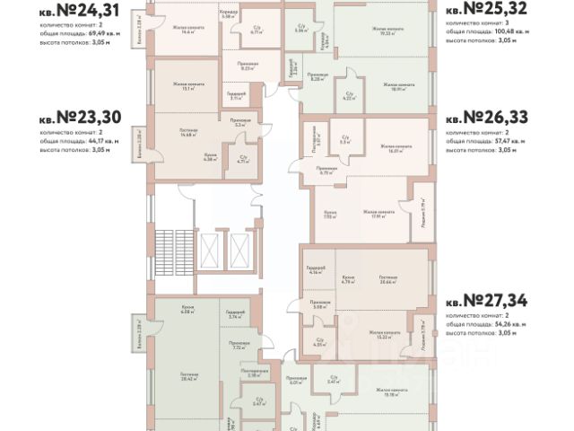 Видовая квартира на 23 этаже, 2 санузла, 2 балкона, вид из окон на Сквер.