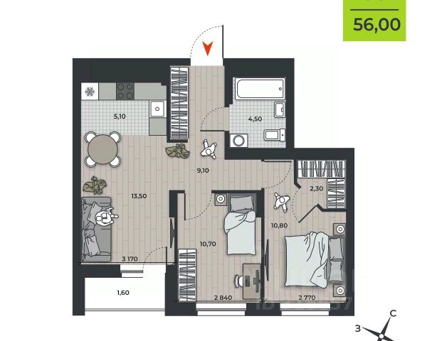 • ✅ Минимальная площадь: 65,3 м²