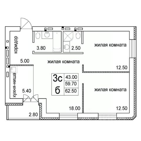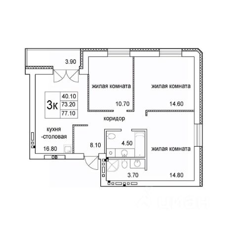 Трехкомнатная квартира с предчистовой отделкой в Микрорайон "Европейский Берег" на 5 этаже. Общая площадь: 84.9 кв.м., жилая: 34.3 кв.м., площадь просторной кухни-гостиной: 21.6 кв.м. Квартира - распашонка, без проходных комнат, окна выходят на paзные стороны дома. В квартире один балкон, два совмещенных санузла. Высота потолков 2.7 м.