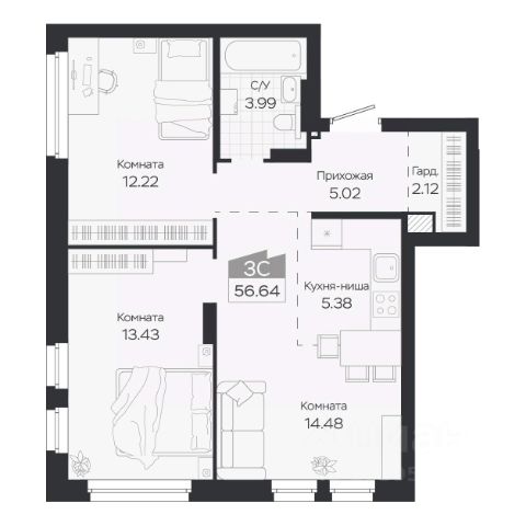 • ✅ Минимальная площадь: 49,5 м²