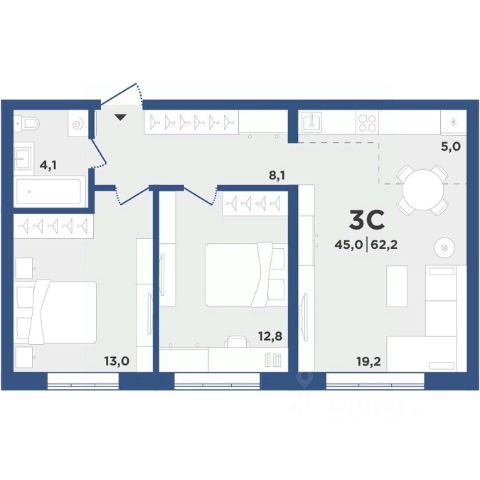 • ✅ Минимальная площадь: 60,7 м²