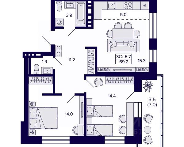 🔷 Минимальная стоимость жилья:7,4 млн руб.;