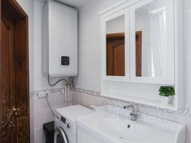 Совмещённый санузел оборудован душевой кабиной и бойлером, который обеспечит бесперебойную подачу горячей воды.