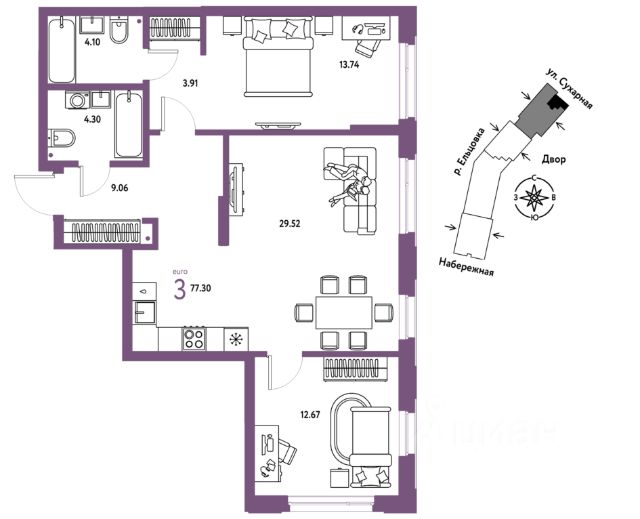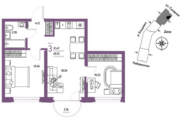 Новая квартира в ЖК "Страна.Береговая" напрямую от федерального застройщика "Страна Девелопмент". Продается 3комнатная квартира на 3 этаже от застройщика Страна Девелопмент. Площадь квартиры 65,5 кв. м. Жилой комплекс "Страна.Береговая" — новый флагманский проект федерального застройщика "Страна Девелопмент" в Новосибирске. Дом на берегу Оби с захватывающими видами из окон. Три секции разной этажности с акцентной башней-доминантой образуют камерное пространство с закрытым двором и личным зелёным садом для отдыха. ПРЕИМУЩЕСТВА Свой приватный двор, окружённый зеленью, которая будет цвести весь год. Двор с релакс-пространством, спортивной зоной с воркаут и настольным теннисом. Детская площадка из природных материалов. Двор круглосуточно находится под видеонаблюдением. Парадные с зелёным оазисом из растений. Для комфорта мы предусмотрели тёплые тамбуры, в зонах ожидания разместили мягкие диваны. Также мы добавили возможность бесключевого доступа — по распознаванию лица или считыванию BLE-ключа. Спроектирована подземная парковка на 217 машиномест. Ваш личный транспорт всегда будет под защитой и видеонаблюдением — переживать о его сохранности не придётся. Въезд в паркинг осуществляется с помощью умной камеры по госномеру либо BLE-метке. А чтобы подняться к квартире, не нужно выходить на улицу — лифты отвезут на нужный этаж. Для гостей за территорией двора предусмотрена открытая гостевая парковка. ОТДЕЛКА Квартиры сдаются с предчистовой отделкой: произведена разводка электричества и отопления, выполнена стяжка пола, стены выровнены "под маяк", установлены розетки, выключатели и радиаторы. ДИЗАЙНЕРСКАЯ ОТДЕЛКА При покупке квартиры в ЖК "Страна.Береговая" можно включить стоимость ремонта в ипотеку. Пять вариантов на выбор: хлопковая нить, серый шторм, белый камень, шалфей, голубой вереск. Включено всё — обои, ламинат, натяжной потолок и даже кондиционер. Также для вас есть четыре варианта ремонта в ванной — акриловая ванна с экраном, смеситель с лейкой, подвесной унитаз, зеркало с подсветкой. Останется только разместить мебель! СПОСОБЫ ПОКУПКИ Сотрудники "Страна Девелопмент" будут сопровождать вас на каждом этапе сделки, помогут получить одобрение по ипотеке или снизить ежемесячный платеж. - ипотека - рассрочка - с использованием материнского капитала - 100% оплата наличными
