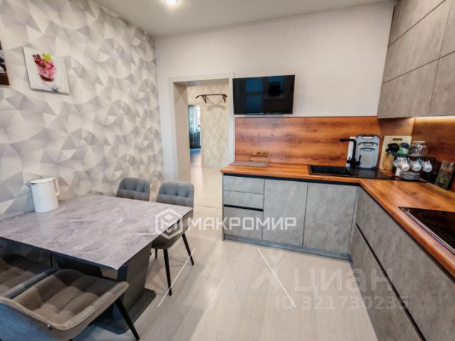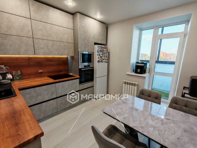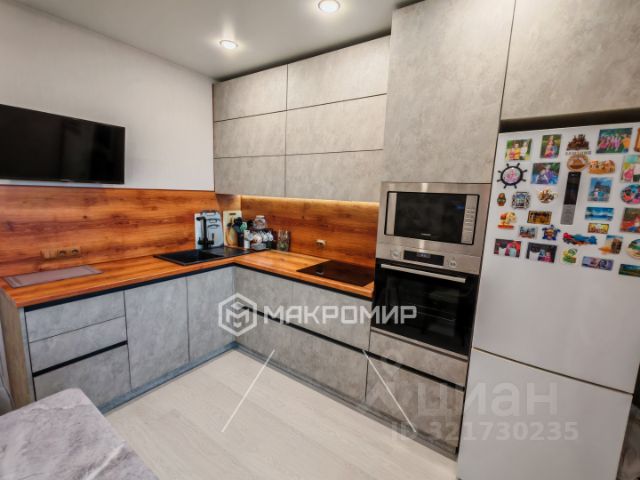 В кухне-гостиной выполнено зонирование кухни, комнаты изолированные. Окна комнат выходят на две стороны. Все окна в пол, поэтому квартира светлая. Застеклённая лоджия. Кухонный гарнитур со встроенной бытовой техникой остаётся (посудомоечная машина, микроволновая печь, духовой шкаф, газовая плита на 5 конфорок, вытяжка). Также остаются встроенные шкафы. Техника и мебель по договорённости. Из техники имеется телевизор, холодильник, стиральная машина, кондиционер.