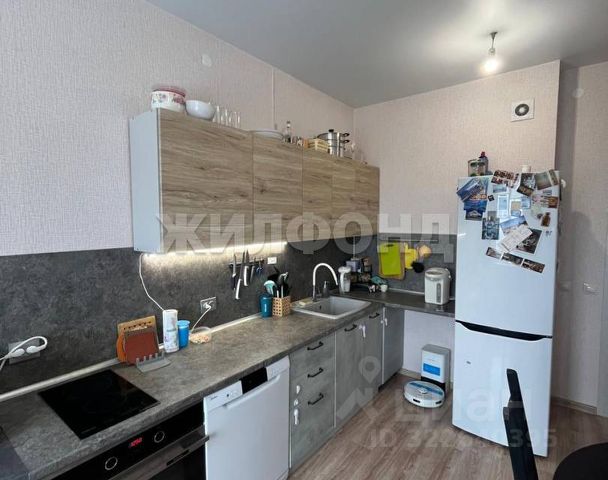 В квартире остается кухонный гарнитур, шкаф-купе, диван.