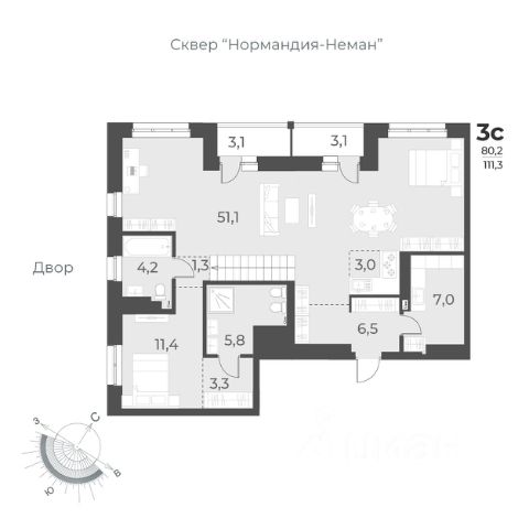 Продаётся 3-комнатная квартира в сданном доме (Дом 3), срок сдачи: III-кв. 2024, общей площадью 91.3 кв.м., на 1 этаже. При планировке жилых пространств комплекса "Нормандия-Неман" базовыми аспектами стали новаторство, рационализм и жизнелюбие. В квартирной типологии целый ряд инновационных планировок. Творчески осмыслена и топография места: этот потенциал красиво реализован в пентхаусных квартирах - в жилищах с панорманым видом и буквально общегородским обзором. Отсюда будет виден и центр Новосибирска, и зеленое приволье Заельцовского бора, и переливчатая гладь Оби.