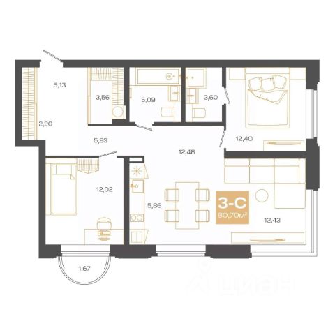 206 128 ₽/м²