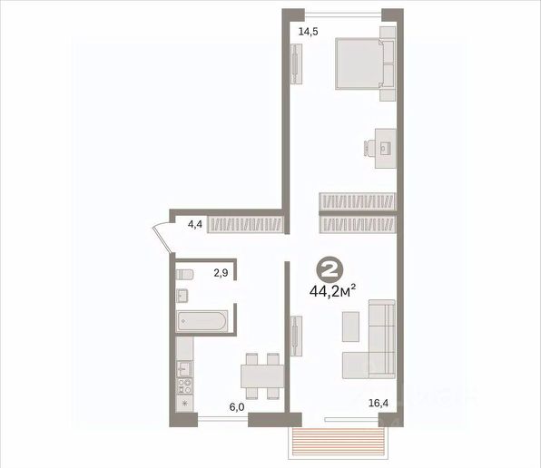 Уютная 2-к квартира 41,6 м² на 2 этаже — идеальное место для спокойной и комфортной жизни.