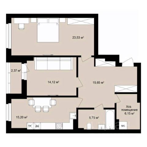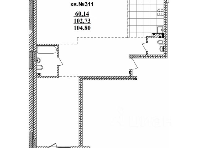 - Жилая площадь: 59,3 кв. м.