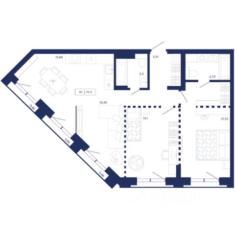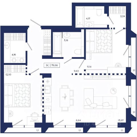 Продаётся 3-комнатная квартира в строящемся доме (Секция 1.1), срок сдачи: IV-кв. 2026, общей площадью 105.03 кв.м., на 7 этаже. Unity Center — квартал бизнес-класса в "золотом" центре Новосибирска. Архитектура в стиле модернистского экспрессионизма, непревзойденный уровень комфорта, элитная локация и премиальное окружение. Девелопер "Юнити" объединил лучшие мировые практики и создал проект для тех, кто ценит время и навсегда остается преданным ритму центра мегаполиса. — Квартал возводится в историческом центре локации, в 5 минутах от площади Ленина; — Уникальная концепция остекления делает здание заметным за десятки километров; — Эксклюзивные планировочные решения с многоуровневыми витражами и видами на закатное небо; — Приватная территория с функциональными зонами для досуга и высококлассным ландшафтным озеленением. Unity Center — живите насыщенно, живите в центре!