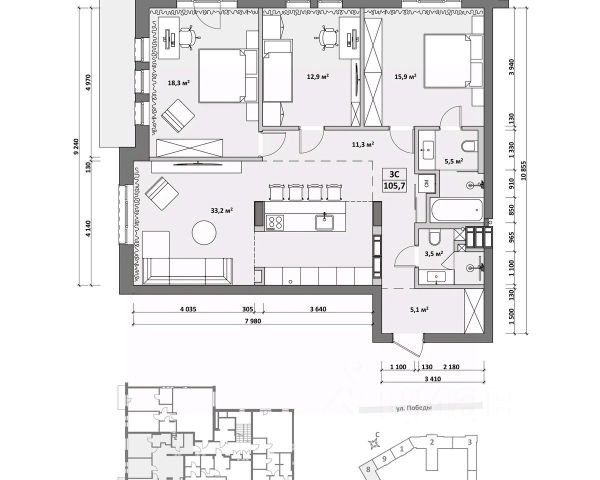 Квартира реализуется с мебелью и техникой.