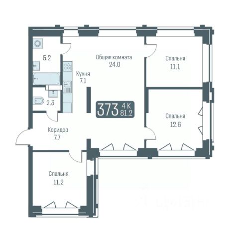 Окна квартиры выходят на две стороны.