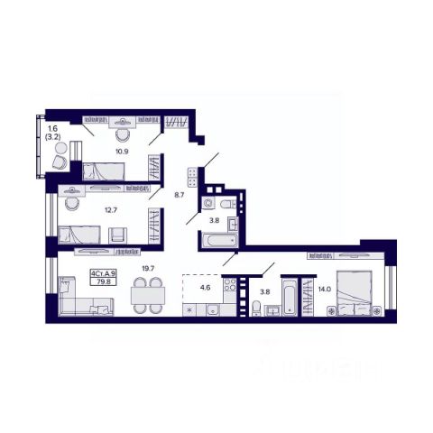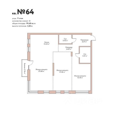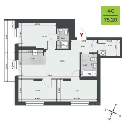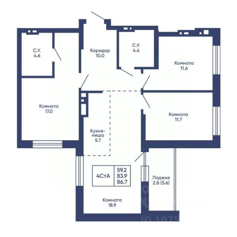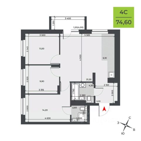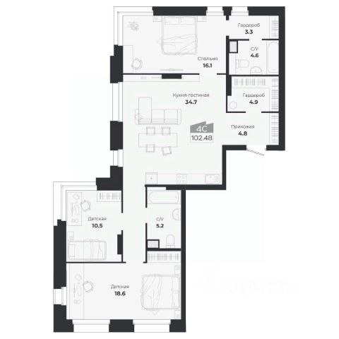 Продаётся 4-комнатная квартира в строящемся доме (Садовая, 17), срок сдачи: I-кв. 2026, общей площадью 105.55 кв.м., на 11 этаже. Расположение, транспортная доступность