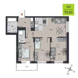 Квартира с тремя изолированными комнатами, просторной и функциональной гостиной с кухонной зоной, двумя вместительными гардеробными, двумя санузлами и балконом.