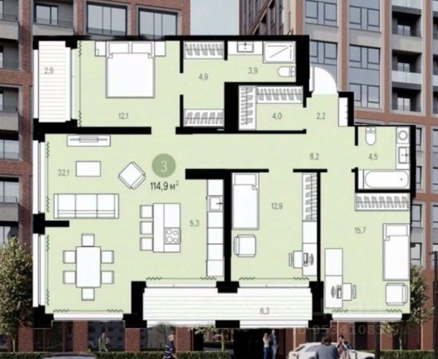 Планировка: просторная кухнягостиная с зоной отдыха и обеденной группой, две изолированные спальни и возможность сделать третью полноценную спальню с гардеробной на втором уровне без потери объёма и света.