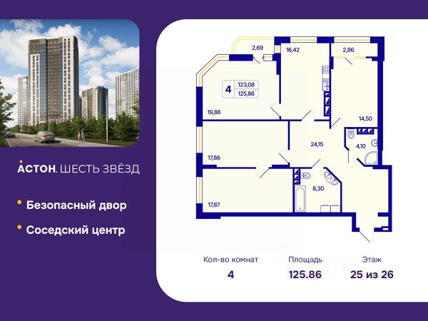 Обмен квартиры на новую. Предложение от застройщика. По всем вопросам обращайтесь в офис продаж, мы вам все подробно расскажем! Просторная четырехкомнатная квартира с предчистовой отделкой в Квартал "Авиатор" на 15 этаже. Двухуровневая квартира, на каждом этаже вы можете выделить различные функциональные зоны. Общая площадь: 120.08 кв.м., жилая: 46.2 кв.м., площадь просторной кухни-гостиной: 29.4 кв.м. Квартира угловая, очень светлая, естественная вентиляция при открытии окон. В квартире две лоджии, один совмещенный и один раздельный санузел. Наличие в квартире террасы дает возможность для обустройства дополнительной площади. Высота потолков 2.82 м. Дом монолитный, черырехподъездный, переменной этажности, от 9 до 15 этажей. Квартира находится в 3-й секции высотой 15 этажей в корпусе Дом 3. На этаже 7 квартир. В подъезде 1 пассажирский и 1 грузовой лифт. Окончание строительства - 1 квартал 2026 года. Оформление сделки по договору долевого участия. Квартира с кухней-гостиной и четырьмя спальнями в квартале Авиатор. Особенности планировки: второй санузел, гардеробная, свободная планировка, лоджия, разнесённые спальни, мастер-спальня, терраса на крыше. квартиры в нашей базе: АВТ03-Ж3.15.6. Квартал "Авиатор" расположен на пересечении улицы Аэропорт и Мочищенского шоссе, рядом с остановками "Байкальская", "Жуковского" и "Городской аэропорт", в 7 минутах ходьбы от сквера им. Чаплыгина и 10 минутах от крупной транспортной магистрали — Красного проспекта. До станции метро "Заельцовская" и площади "Калинина" — около 10 минут на автомобиле. Квартал связан выездами с Мочищенским шоссе, улицами Жуковского, Аэропорт и Георгия Колонды. Сформированная инфраструктура локации — школы, детские сады, магазины, спортивный стадион — делают жизнь в квартале комфортной. Квартал состоит из восьми домов. Вдоль улицы Аэропорт расположено 6-18-этажное здание с видовыми квартирами. Оно защищает внутреннее пространство от шума и пыли. В центре — четыре 7-9-этажные урбан-виллы. Для них характерны увеличенная площадь квартир, повышенная приватность и малое соседство (30 — 40 квартир). Завершают комплекс два полузакрытых блока высотой 8-16 этажей с фасадами фисташкового цвета и подземной парковкой. Благодаря переменной высотности застройка приобретает человеческий масштаб, во дворы проникает больше света, а число квартир, из которых открывается красивый вид, значительно увеличивается. Первые этажи вдоль Мочищенского шоссе и улицы Аэропорт мы отдали под полезные сервисы и магазины. Активный фронт позволил интегрировать квартал в городской контекст. На территории "Авиатора" расположен многофункциональный спортивный комплекс с открытым амфитеатром, который станет центром притяжения всего района. Если Вы - риелтор, пожалуйста, за более подробной информацией обратитесь на горячую линию на нашем официальном сайте. #2S6twi Продается 4-комнатная квартира в Новосибирской области.