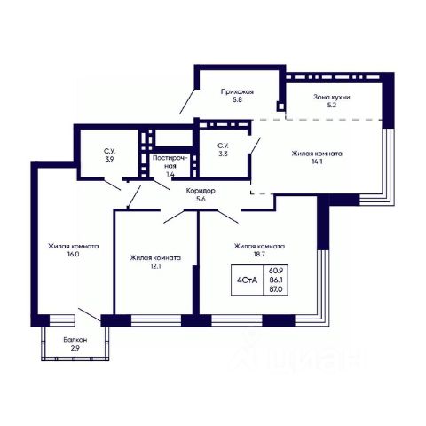 Номер в базе: 11706928 Продам 4-комнатную квартиру в новостройке без отделки в Новосибирске.