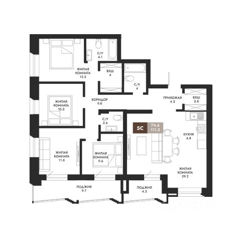 Формат "чистый лист" — вы не переплачиваете за чужой ремонт и можете реализовать свой дизайнпроект под себя: выделить мастерспальню с собственным санузлом, сделать кабинет, детские или гостевую комнату.