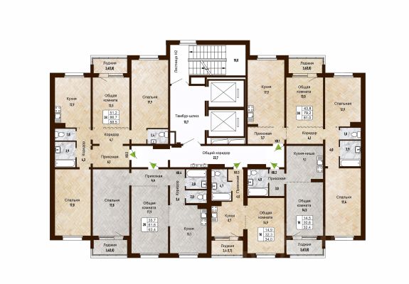 Жилой комплекс "Фламинго" - это 40 пятиэтажных кирпичных и панельных домов и два гаражных комплекса на территории 44,8 га. Всего в комплексе будет представлено 3995 однокомнатных, двухкомнатных и трехкомнатных квартир площадью от 33 до 110 кв. м, расположенных на всех пяти этажах здания. Все квартиры в ЖК "Фламинго" передаются покупателям с готовым ремонтом под ключ. Фасады выполнены в светло-серых, бежевых и коричневых оттенках.