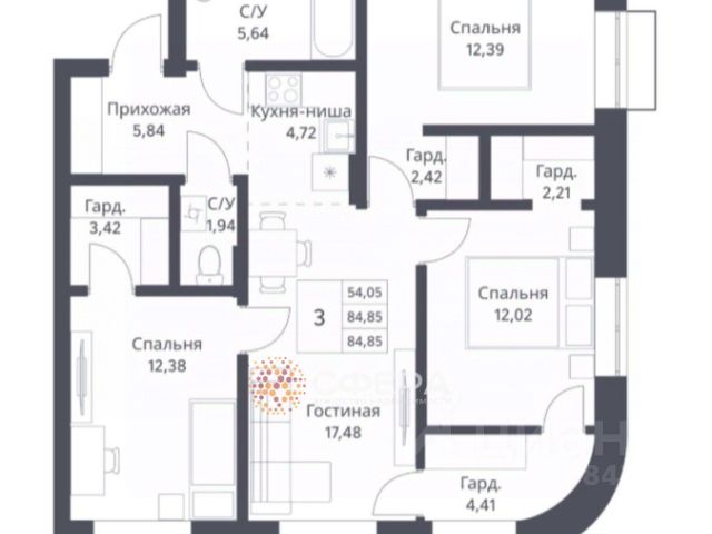 Возможна отделка от строительной компании — Что включено: Обои, моющиеся порядка, 15 вариантов на выбор; Ламинат + керамогранит на входе; Натяжной потолок, светильники, с закладными; Сан.узел: выложен плиткой, на полу керамогранит: -ванна акриловая -тумба подвесная; -тропический душ; -натяжной потолок, светильники, с закладными; -FRAP сантехника