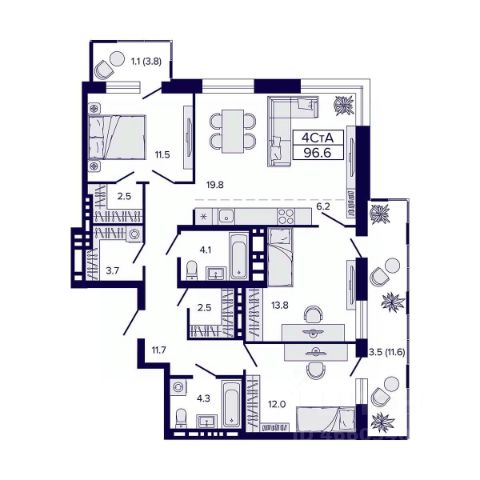 Планировка: просторная кухнягостиная с зоной отдыха и обеденной группой, две изолированные спальни и возможность сделать третью полноценную спальню с гардеробной на втором уровне без потери объёма и света.