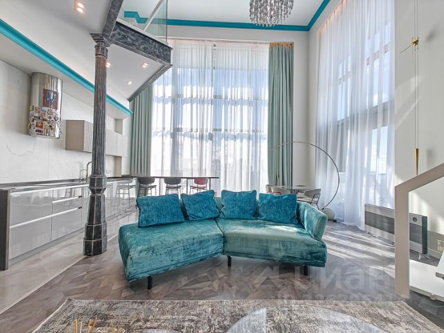 * Просторная кухня-гостиная 54,3 кв.м с стильным дизайном и современной техникой, выходом на террасу, откуда открывается панорамный вид на центр города.
